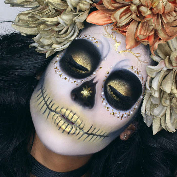 Gold and black metallic halo eye makeup: Finish the look off with your favorite lip balm. Top 5 makeup ideas for a gold dress: Neutral and natural shade taupe can provide nice highlight for minimalist. Combination of brown, gold and bronze eyeshadow palette ideas are best for natural makeup looks. There is also a skeleton nose and coordinating eye makeup. Following those tips you can look as stunning as them on your big day. Here are 2 simple makeup ideas with step by step tutorials for gold dress. Red lips are always a great idea with a very simple eye. See more ideas about makeup, gold makeup, hair makeup. Now, it's time to have some inspirations from the charming looks of celebrities wearing gold dresses. This is a spooky, stylish and super cool idea. (watch in hd)here is a makeup tutorial where i show you how to create this orange and yellow gold half cut crease look, i love how it turned out!